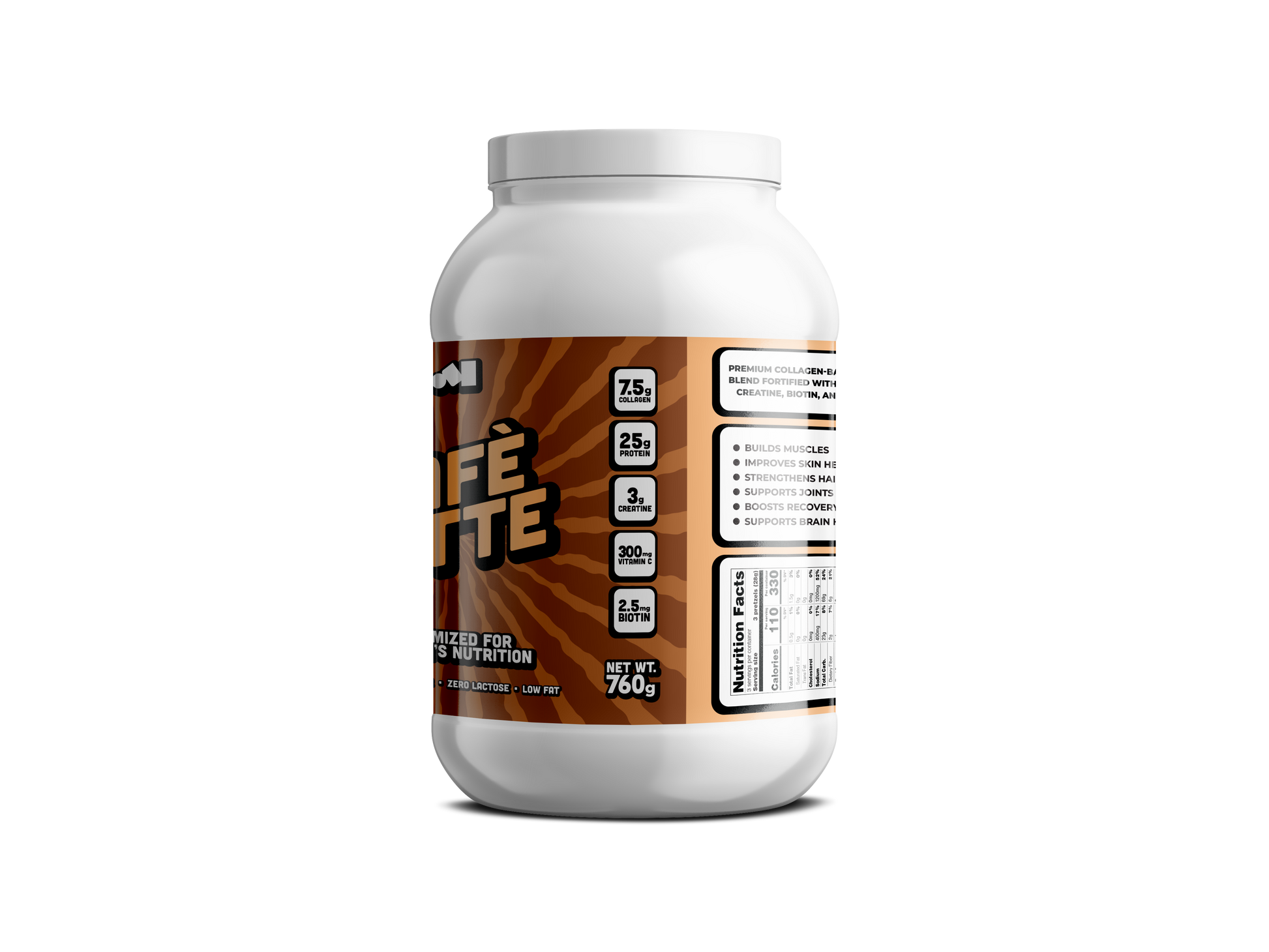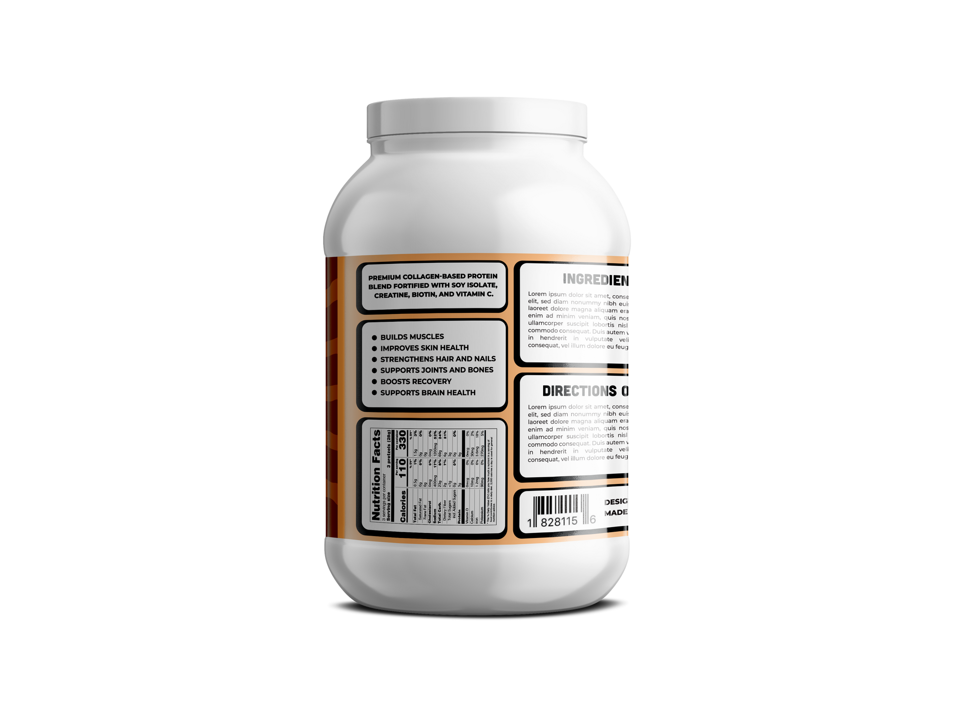 Premium collagen-based protein blend fortified with soy isolate, creatine, biotin, and vitamin C.